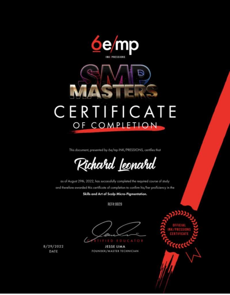 Richard is always wanting to improve his skills and has recently attended training at a masterclass in scalp micropigmentation with internationally recognised and established artists meaning WonderSkulls are the only SMP studio in the UK, especially Glasgow, that has received training from these three world class SMP artists. Richard also attended training with another well respected SMP artist in Glasgow, putting his skillset in very esteemed company. It’s safe to say, you’re in good hands!