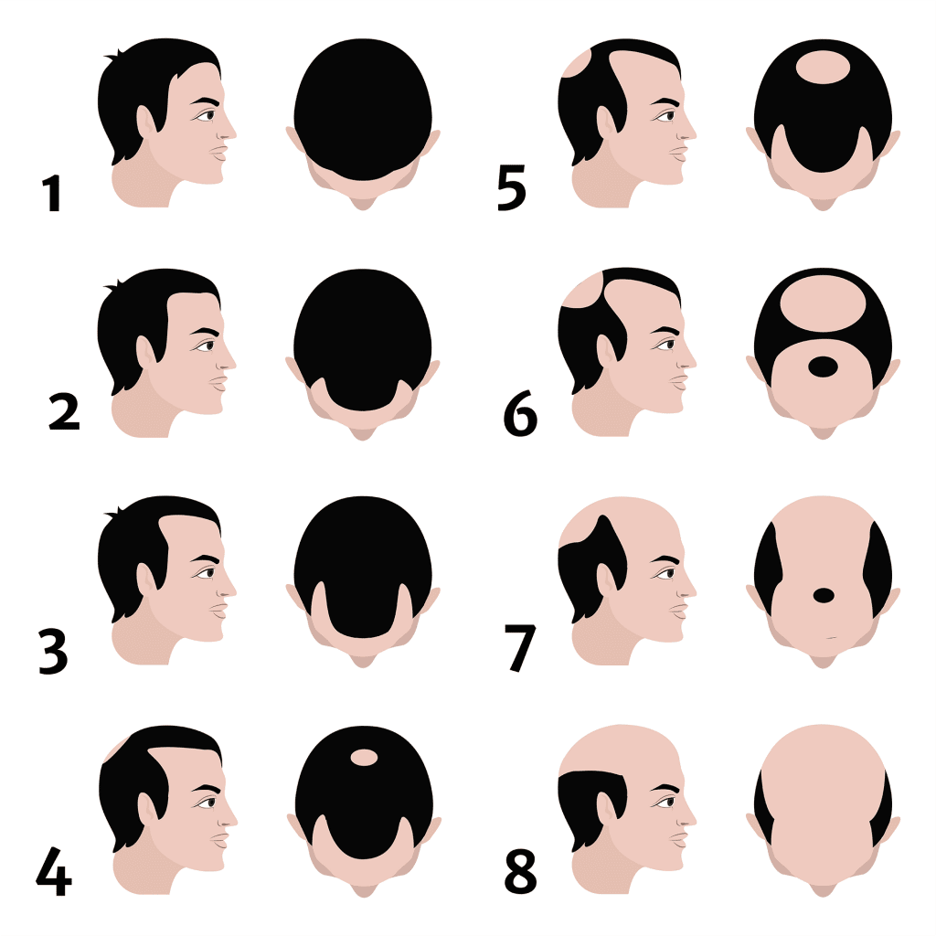 The image is known as the “Norwood Scale”, This will gauge the level of your hair loss and give you a better representation of pricing for the treatment.